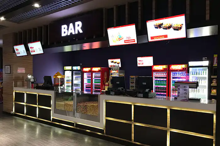 Кинотеатр включает 7 стильно оформленных залов общей вместимостью 633 места. Наибольший зал рассчитан на 135 зрителей, а самые камерные — на 87–90 мест, что позволяет подобрать формат просмотра для любой компании. Залы оснащены современными проекционными системами и акустикой, обеспечивающими яркое изображение и качественный звук.